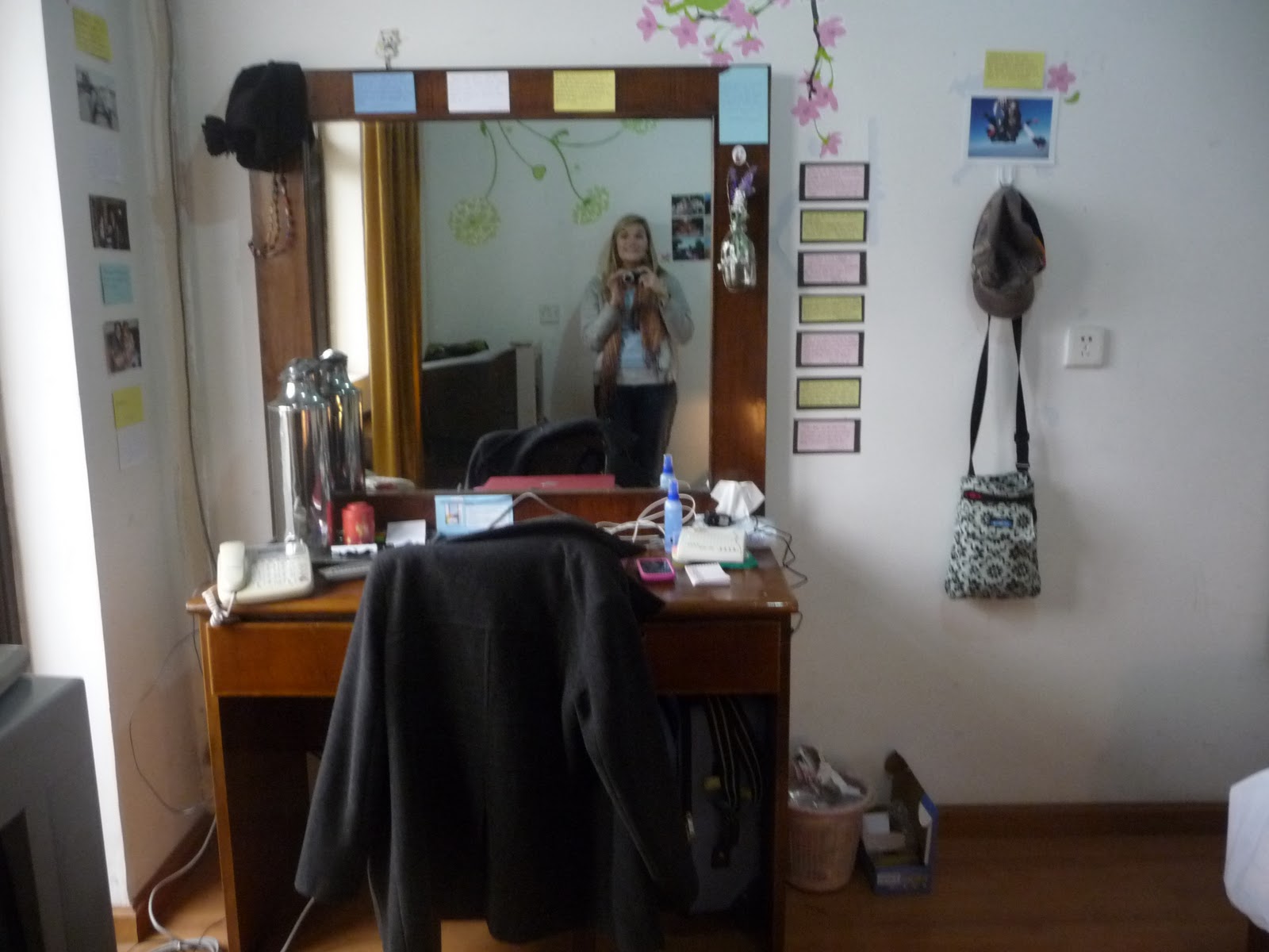 Yesterday, some girls and I went to the Women's Market. Its basically a huge building with TONS of little booths selling all things women. You name it, they have it. Scarves, headbands, earrings, leggings, purses, clothes, shoes, etc. The place was a ZOO! We had to push and shove our way through the crowds. And you have to bargain there, so it was a little intimidating for me. It was a great experience though :) I got two scarves for about $5 woop woop! Then, we met up with some guy friends for tea and dinner. That night, we went to English Corner. It meets in a coffee shop on Saturday nights and Chinese people can come to practice their English. It was such a cool time. Sitting in a cute shop drinking coffee and having good conversation is my idea of a great evening! I hope to go back often and build relationships with the regulars. I met one PRECIOUS girl named Kathy. I don't think precious even describes her! We talked for a long time, and I look forward to getting to know her better in the weeks ahead!